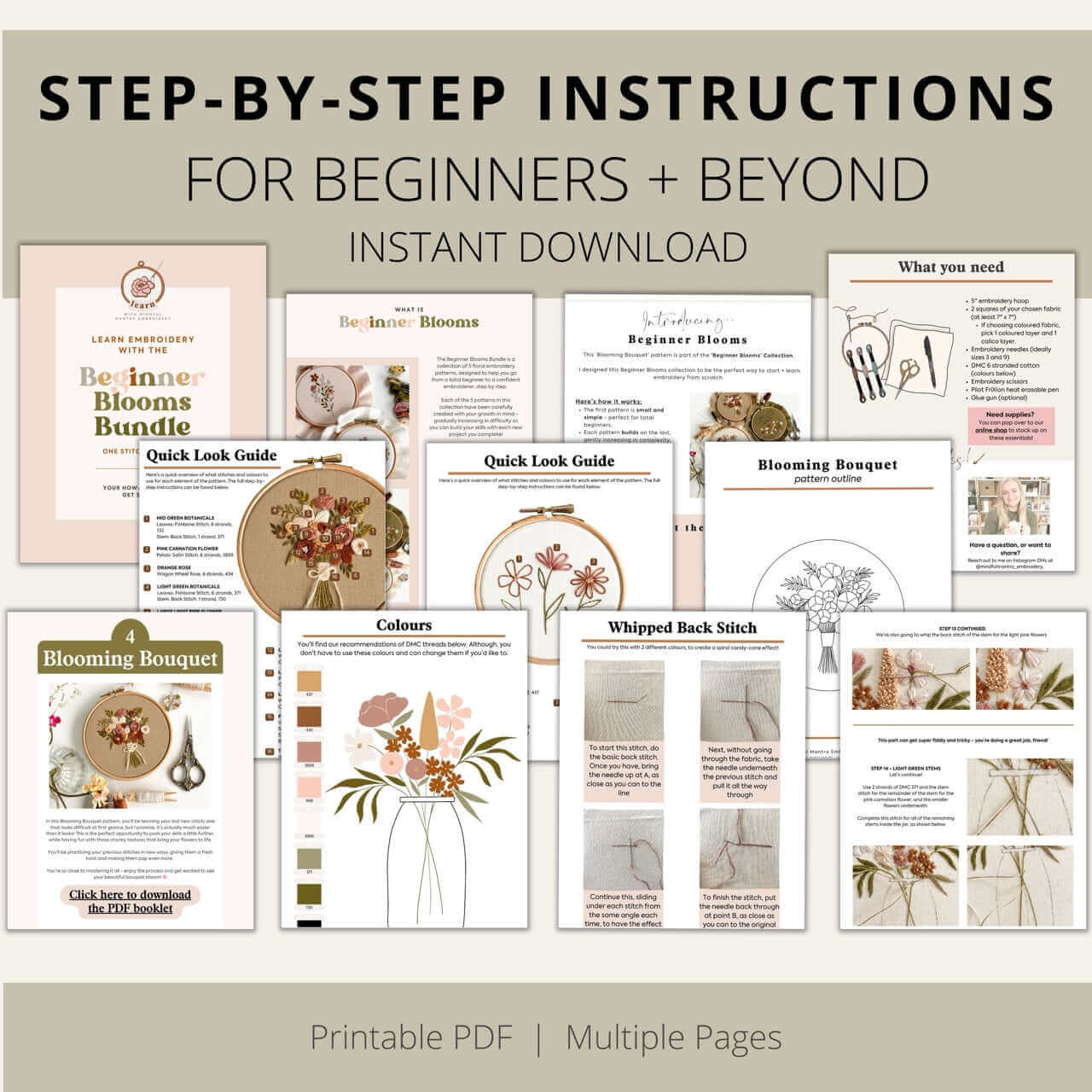 • Instant PDF download with a beginner’s guide, stitch instructions, and a supplies list