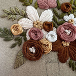 This lush, floral arrangement is bursting with detail and introduces more advanced stitching techniques that will challenge and inspire you! With its intricate layers of florals and leaves, this pattern is perfect for those looking to refine their technique while stitching some beautiful florals.
