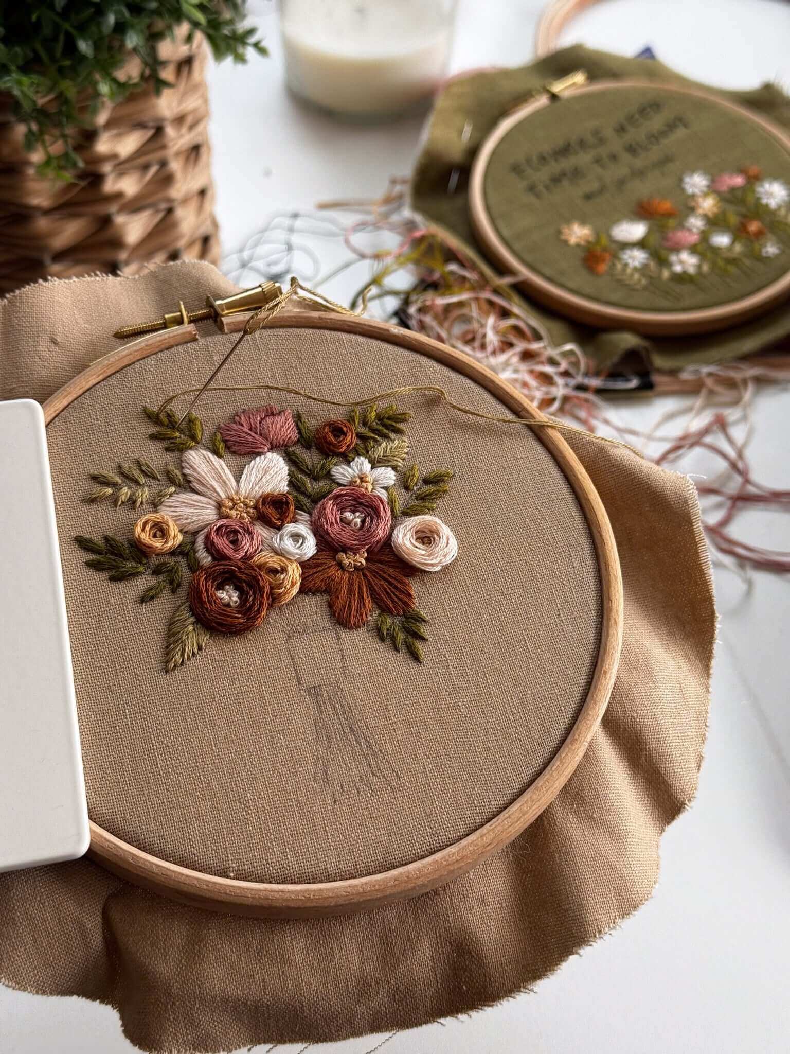 At Mindful Mantra Embroidery, we empower overwhelmed, busy women like you to reclaim your time and creativity through our modern embroidery kits, patterns, and online courses.