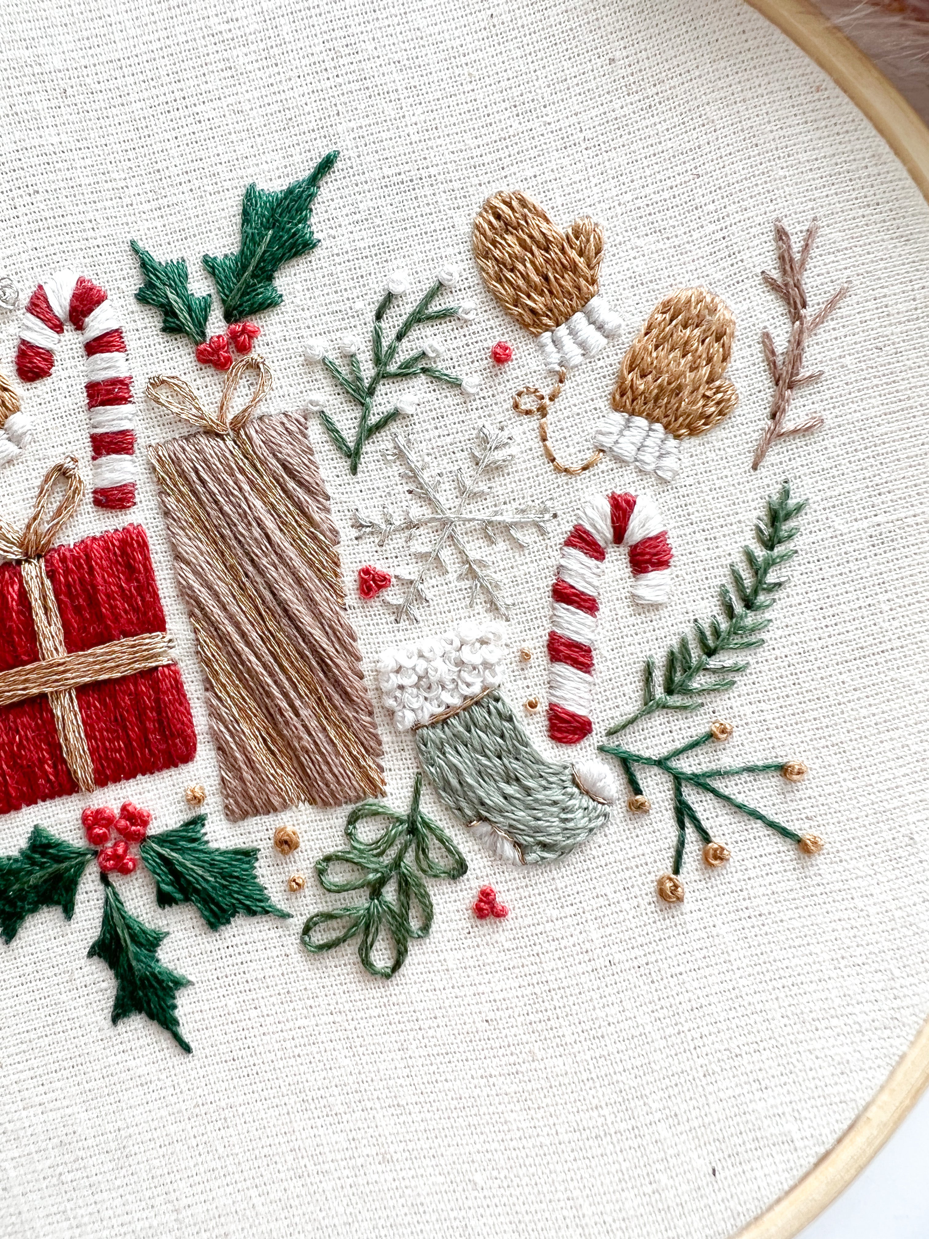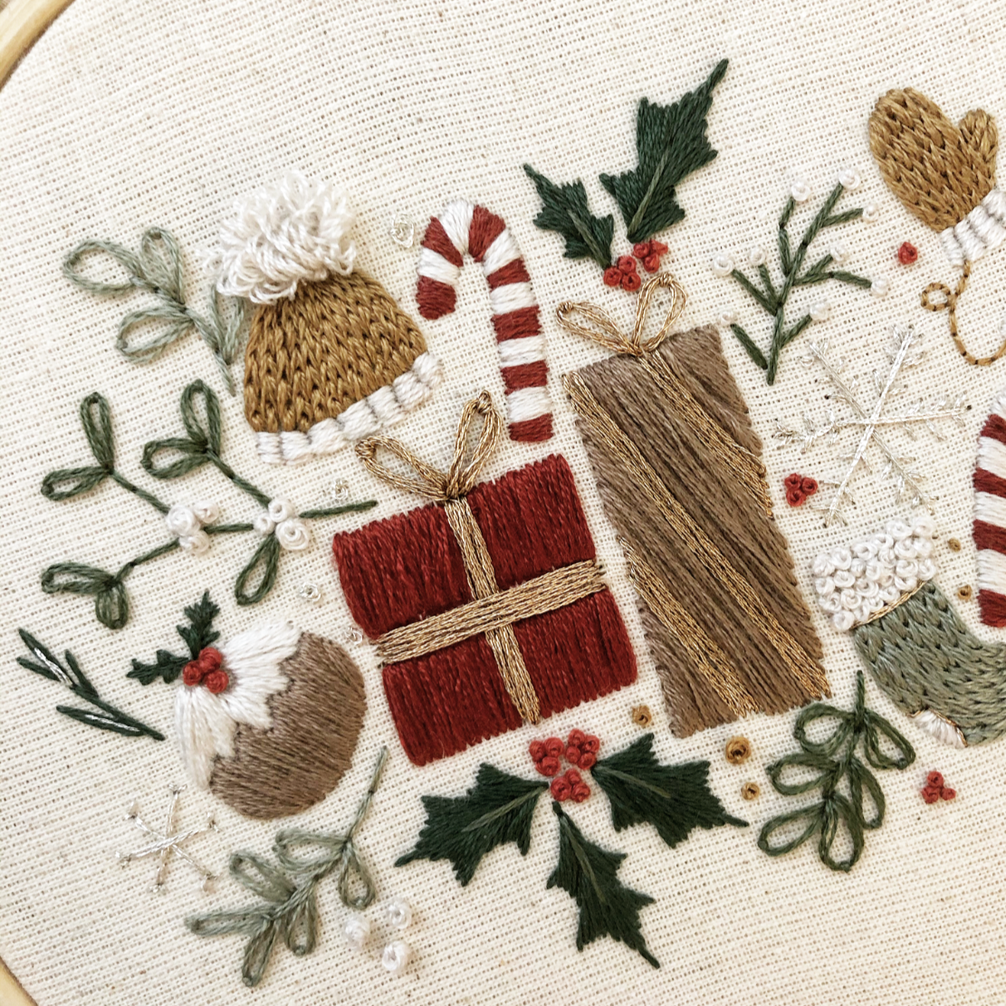 This fun design is great to cosy up in front of the fire with, to get in the Christmas spirit, and create a beautiful piece of embroidered art.