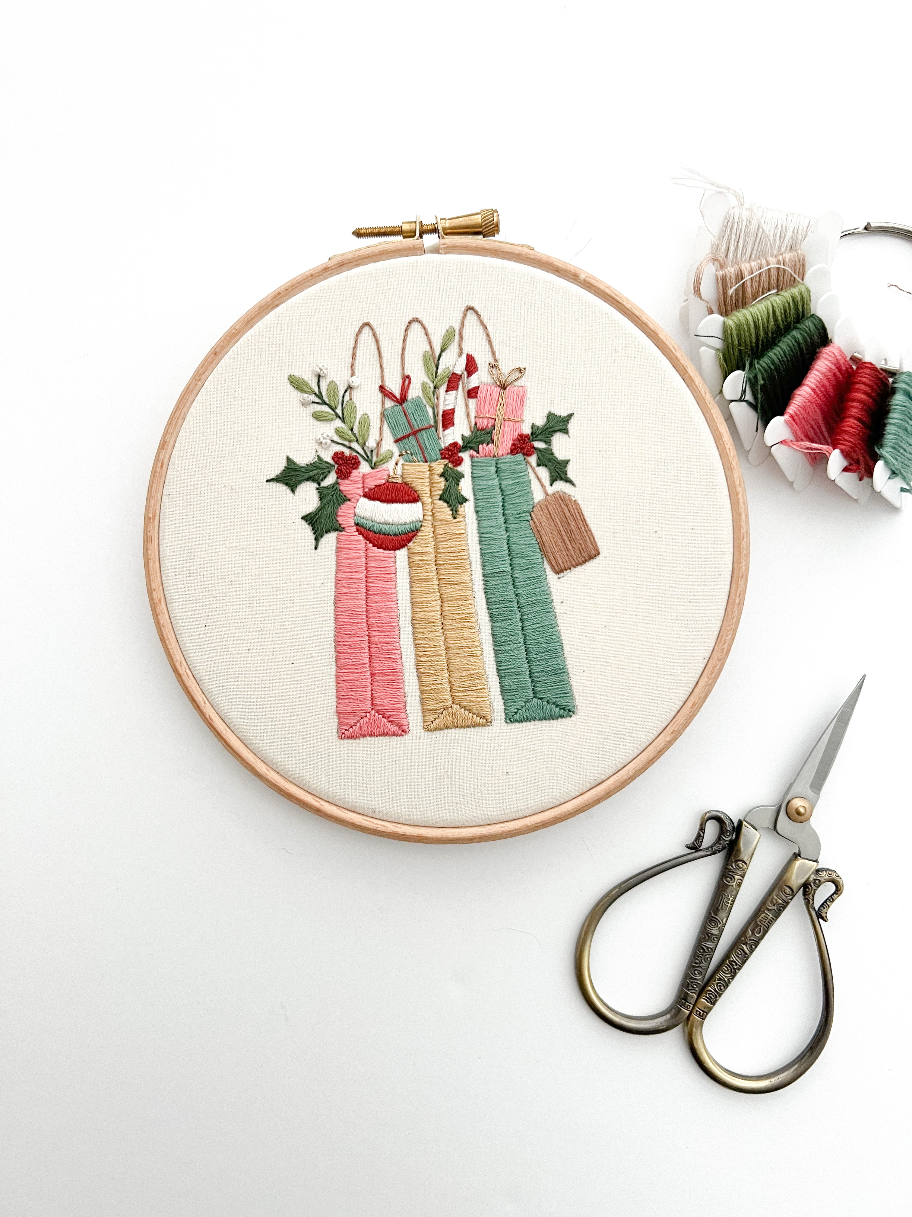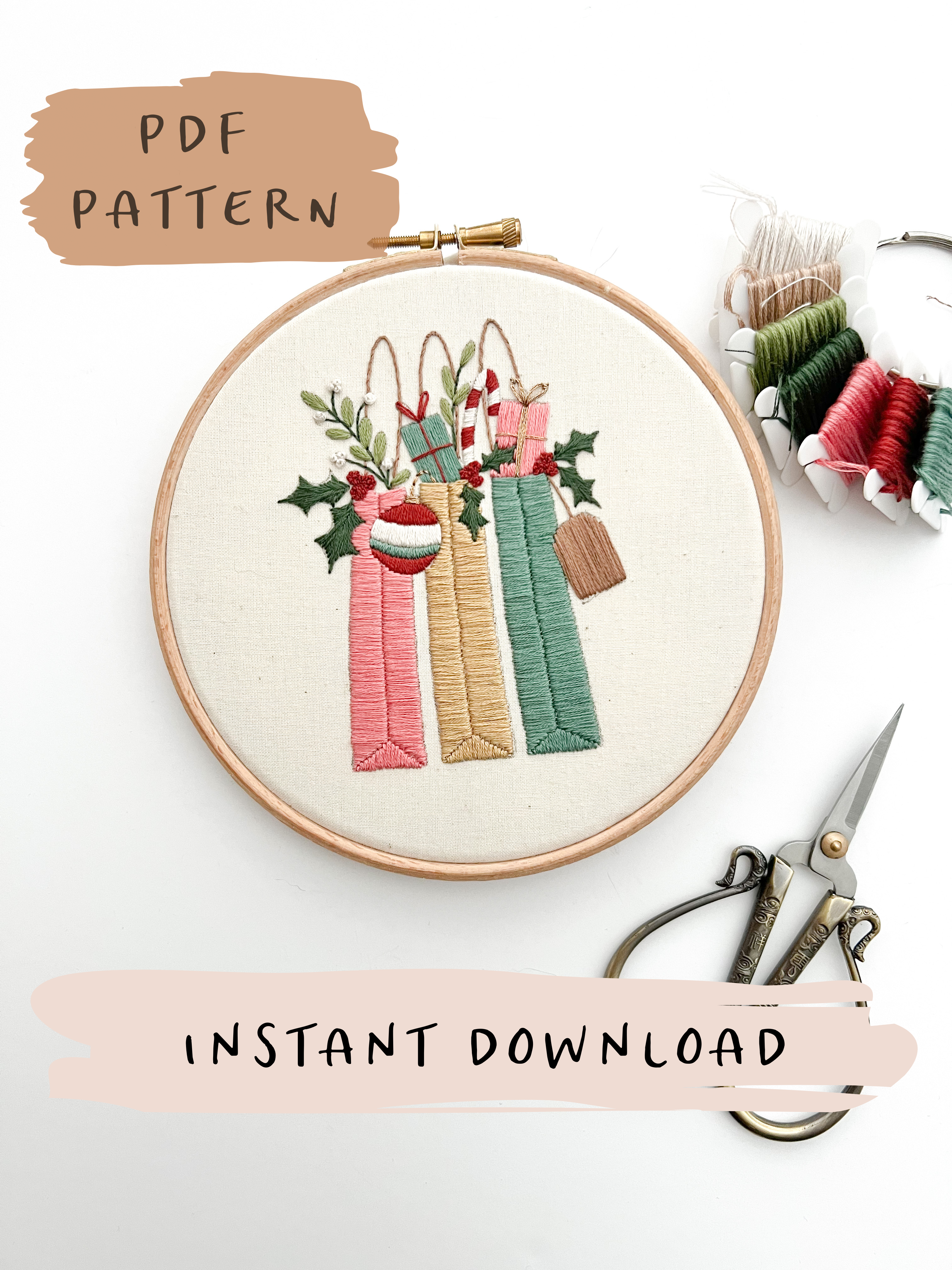 Christmas Shopping Embroidery Pattern with Instructions || Digital Download