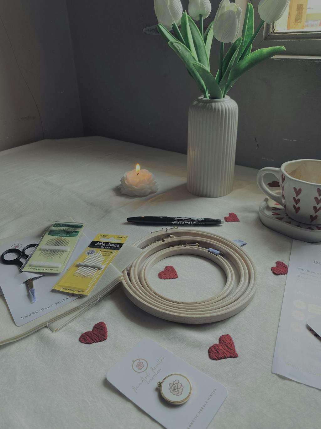 The embroidery kit includes the essentials you need to complete this hoop: