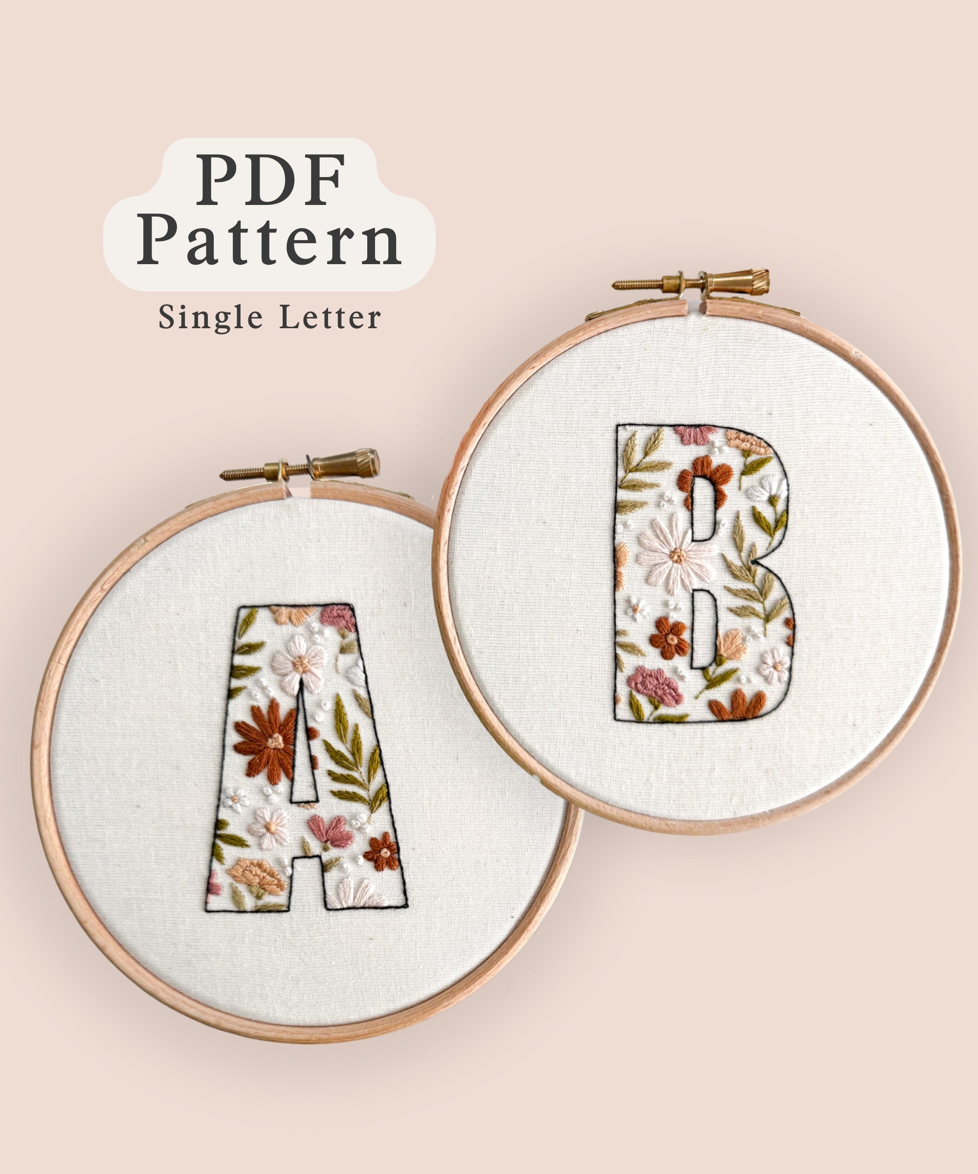 Create a beautifully personalised embroidery piece with our Floral-Filled Letters embroidery patterns, designed to help you stitch elegant, floral letters with confidence!