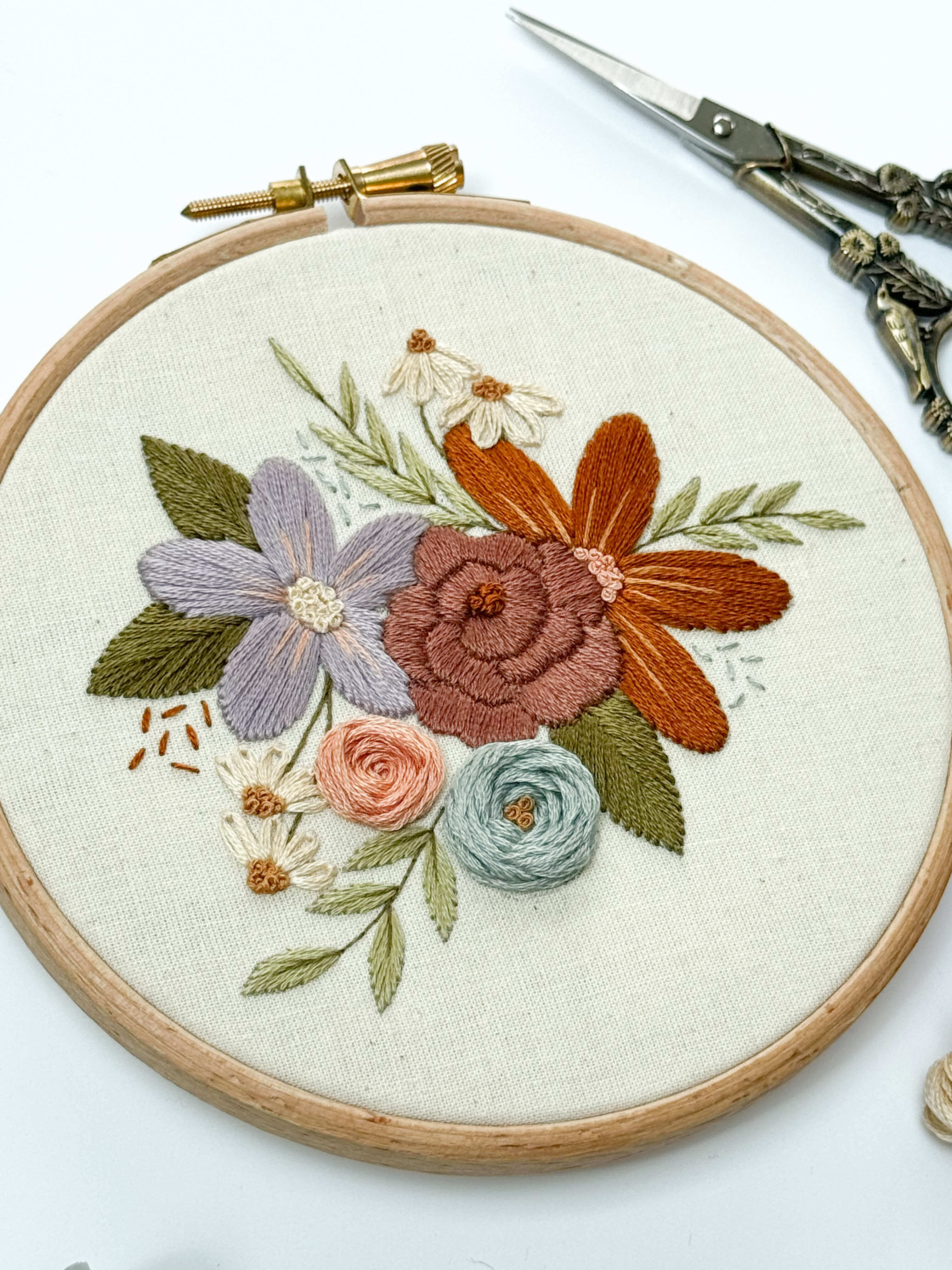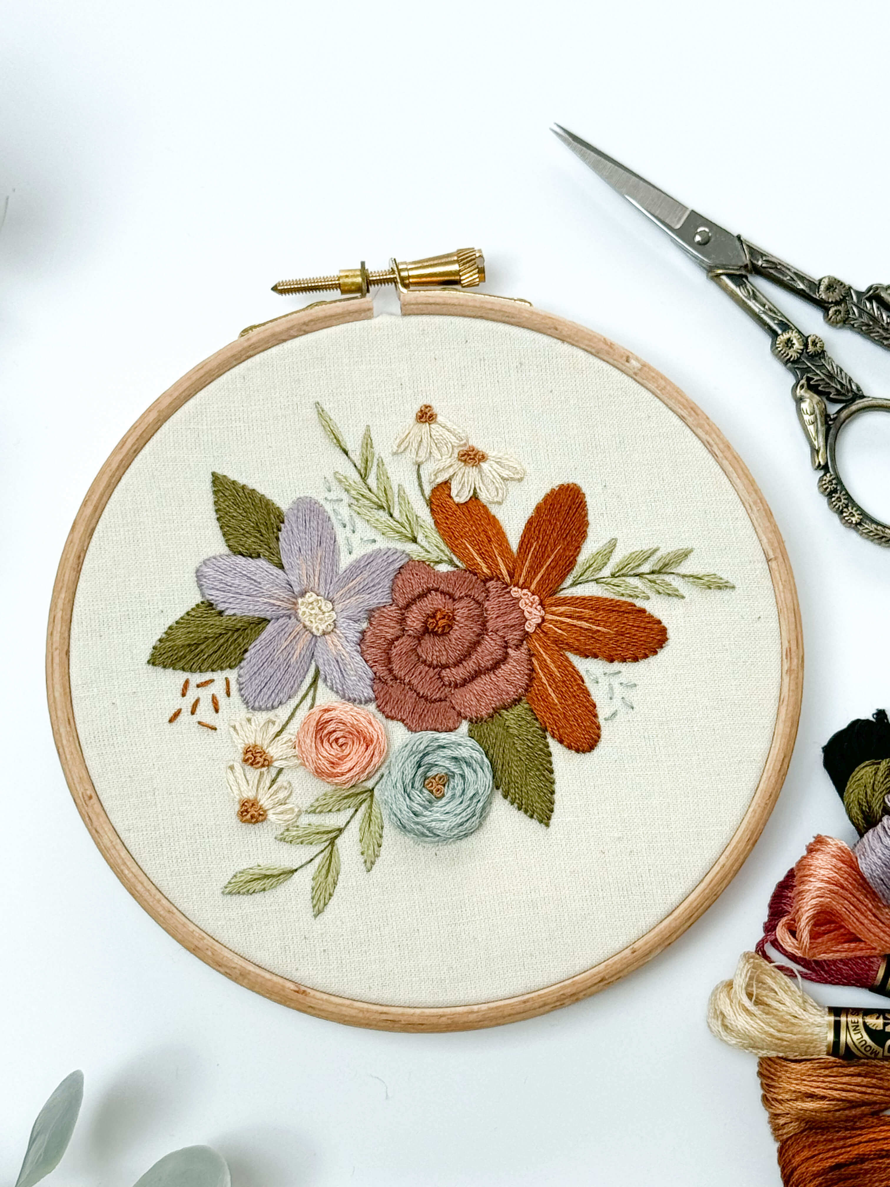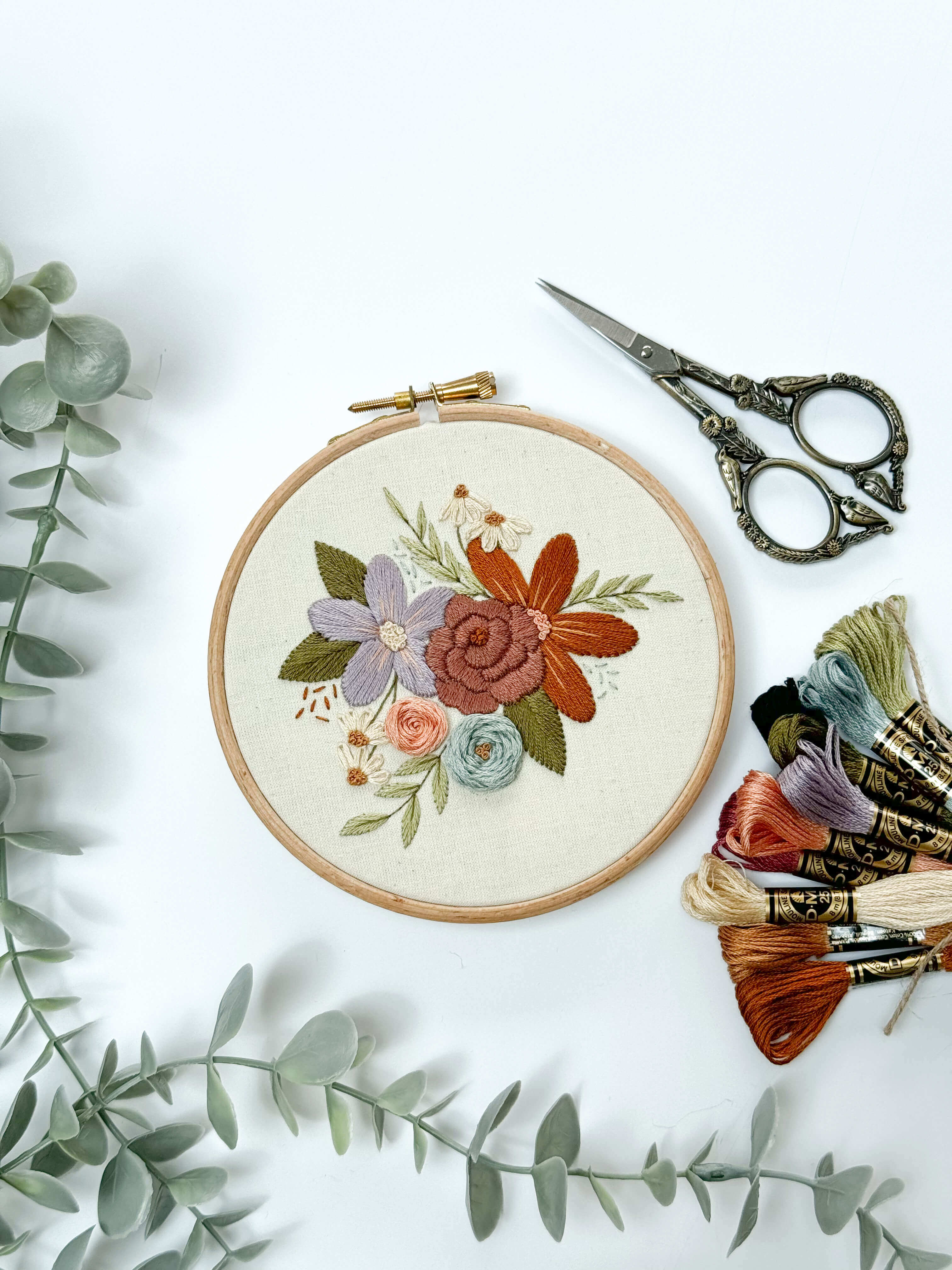 * Specific details of the size of hoop and colours of DMC thread are included as part of the embroidery pattern download