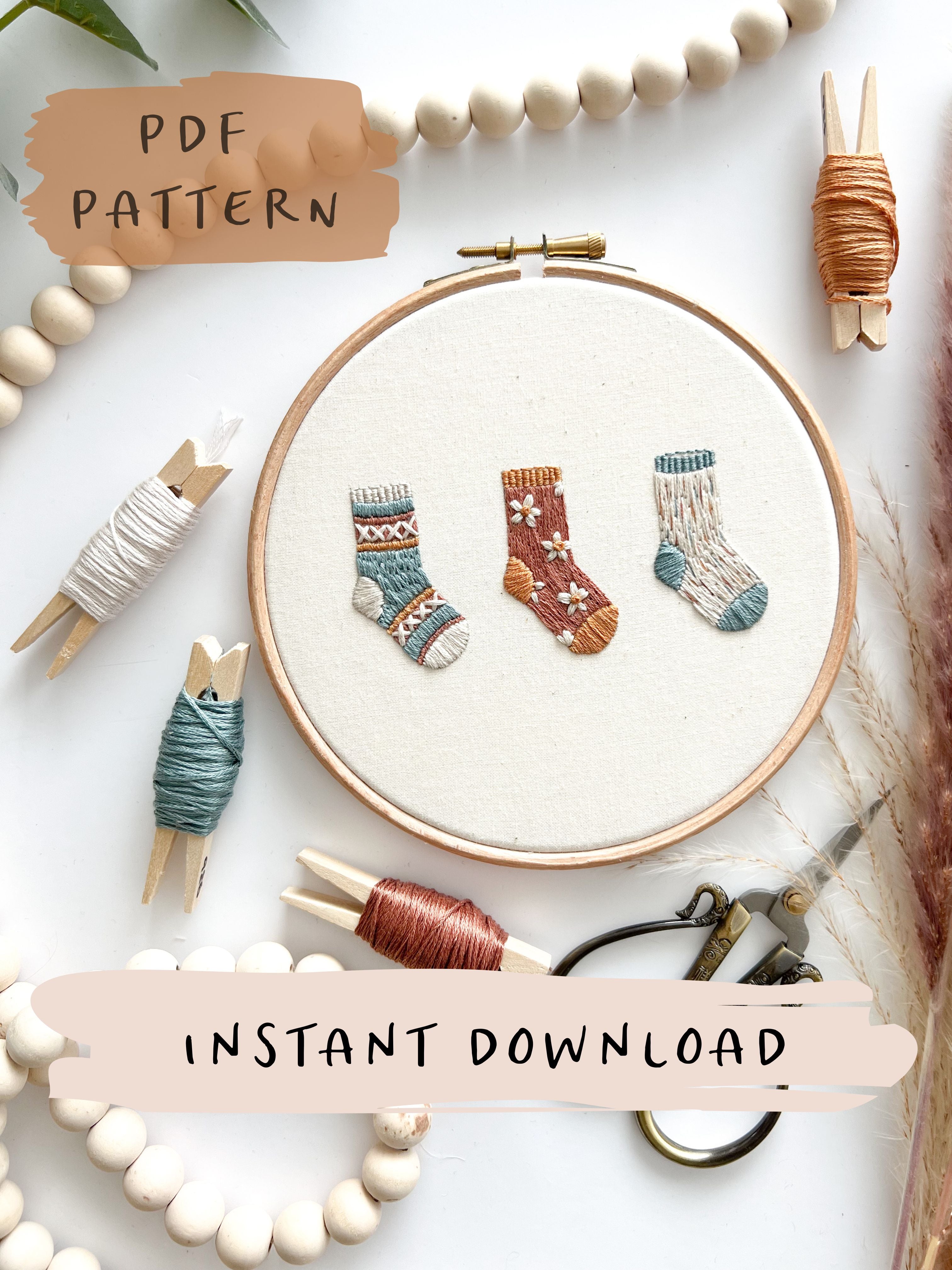 Knitted Socks Embroidery Pattern with Instructions || Digital Download