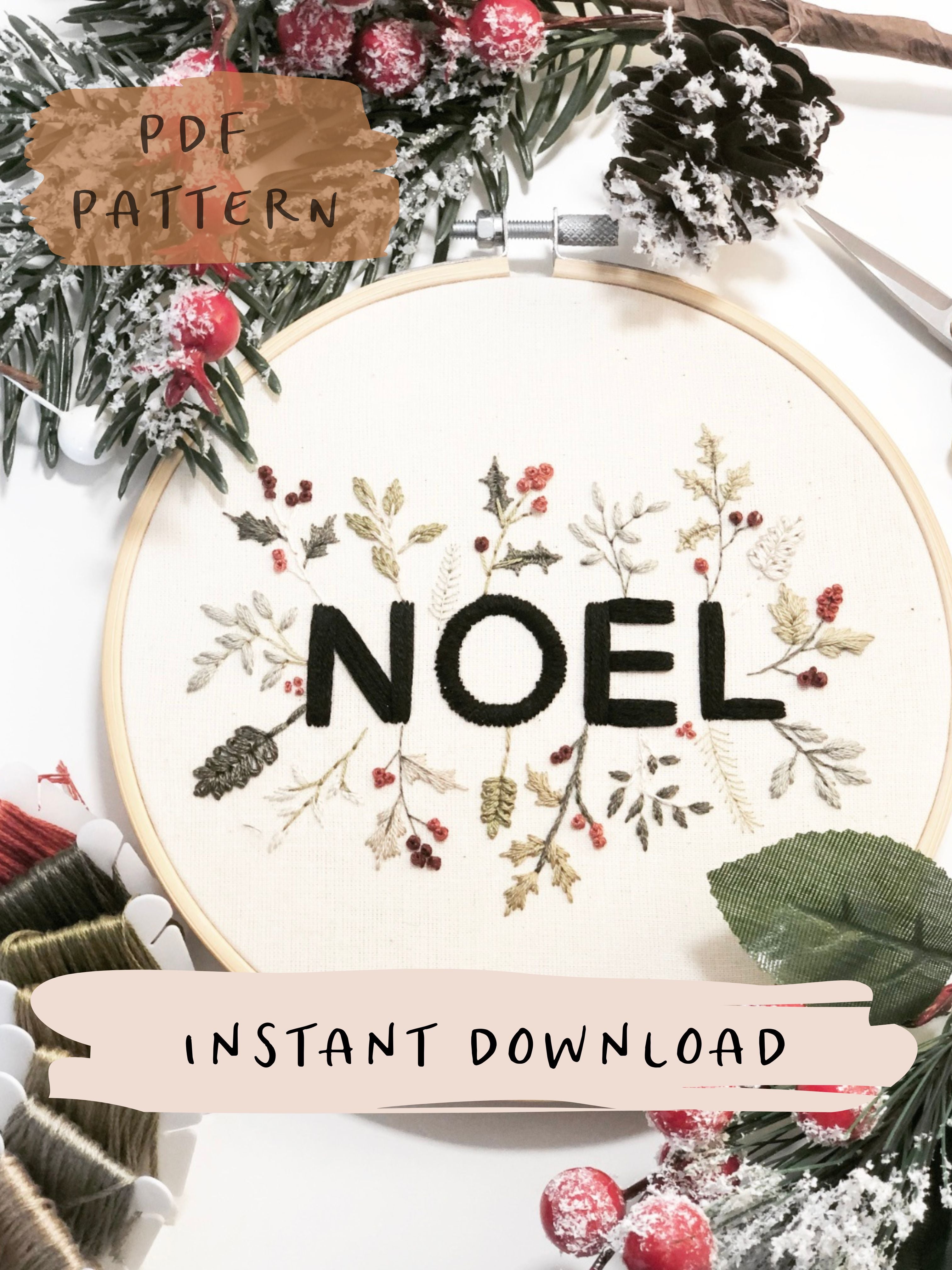 NOEL Embroidery Pattern with YouTube Tutorial || Digital Download