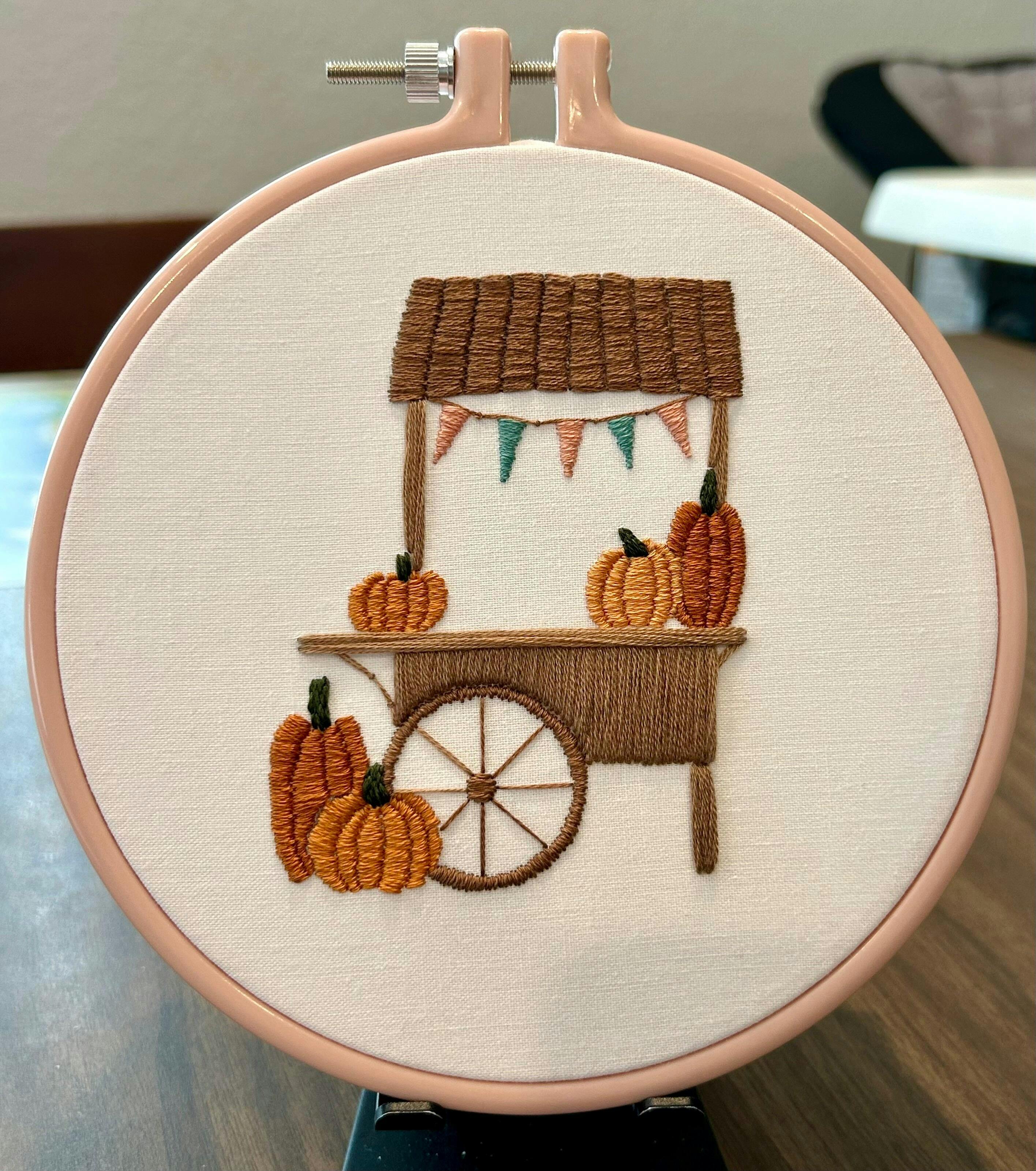 Pumpkin Cart Embroidery Pattern with Instructions || Digital Download