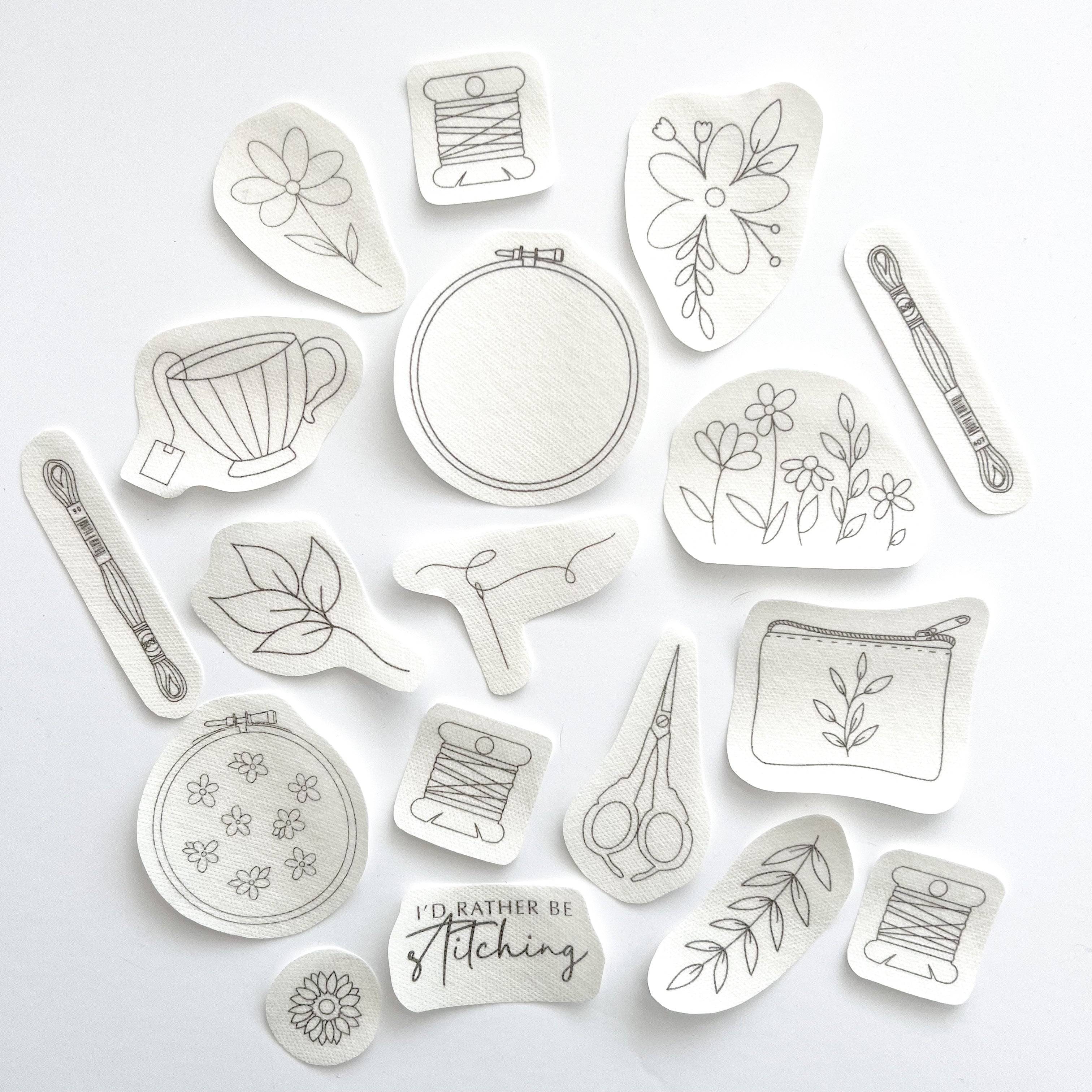The patterns included within this pack have been created for a beginner with a basic understanding of embroidery. They are pre-transferred, so no drawing or tracing is required, making them perfect for beginners.