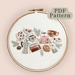Tea, Coffee, Books and Flowers Embroidery Pattern